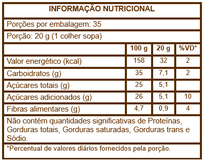 ARMAZENAMENTO: Fechada essa compota pode ser armazenada em armários, após aberta conservar na geladeira, é recomendável consumir em até 10 dias.